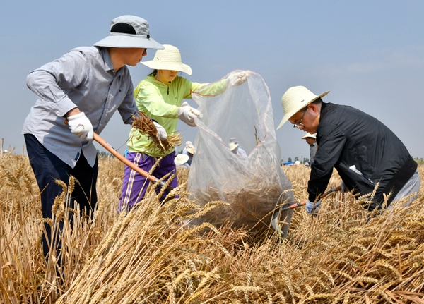 当天,场站管理处还组织中心机关干部职工,全力协助韩德俊教授课题组开展“小麦生物学创新研究平台田间表型精准鉴定与基因资源发掘利用”上百个“数据库”小区试验材料的采样作业,抢抓晴好天气,提前完成往年需要1周至10天的采样任务。