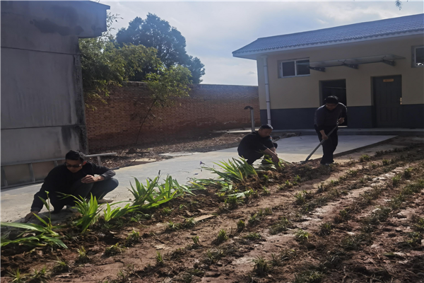 在整治行动中,乾县试验站职工自己动手,在站部空地栽植了麦冬、鸢尾草,动用挖掘机彻底清除了枯死的树桩树根,铲除了枣子渠土地田埂和水保所气象观测点的杂草、杂树,经过4天的劳动,达到了美化乾县试验站站貌的预期效果。